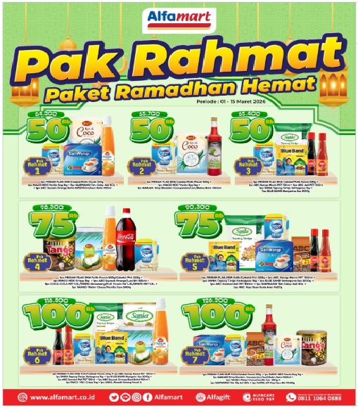 CIREBON, RAKYATCIREBONDISWAY.ID - Promo Alfamart minggu ini periode 1 hingga 15 Maret 2026, Pak Rahmat (Paket Ramadhan Hemat) hadir dengan deretan produk diskon.